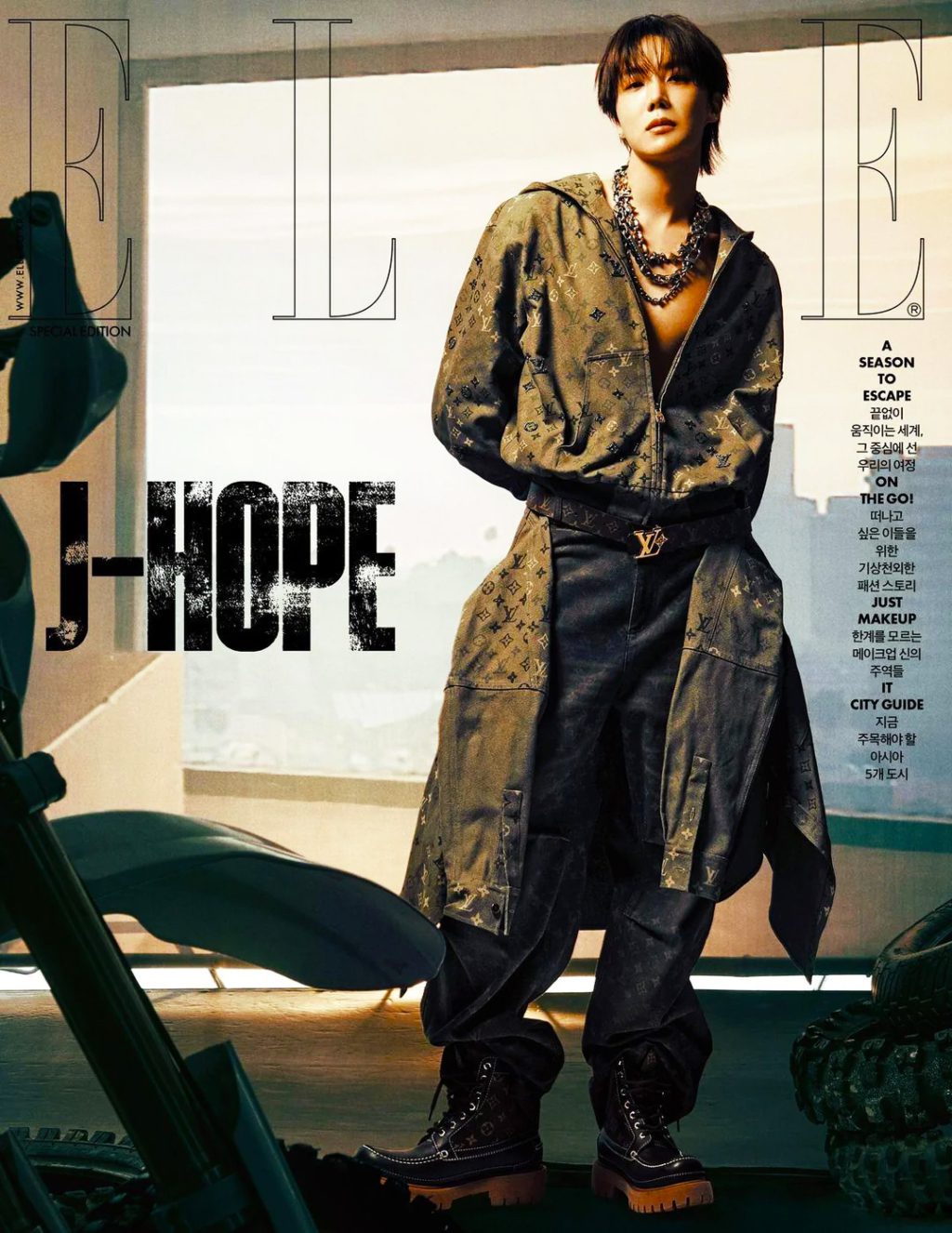 The shoot itself is a masterclass in high-fashion storytelling, set against minimalist backdrops that accentuate J-Hope’s dynamic energy and stylistic expression. The photographs move fluidly between moods — from confidently edgy to introspectively serene — showcasing a versatile visual narrative that resonates with ELLE’s refined aesthetic. The editorial styling directed by top fashion creatives highlights eclectic textures and avant-garde silhouettes, drawing on contemporary Korean and global trends while tailored to J-Hope’s unique persona.