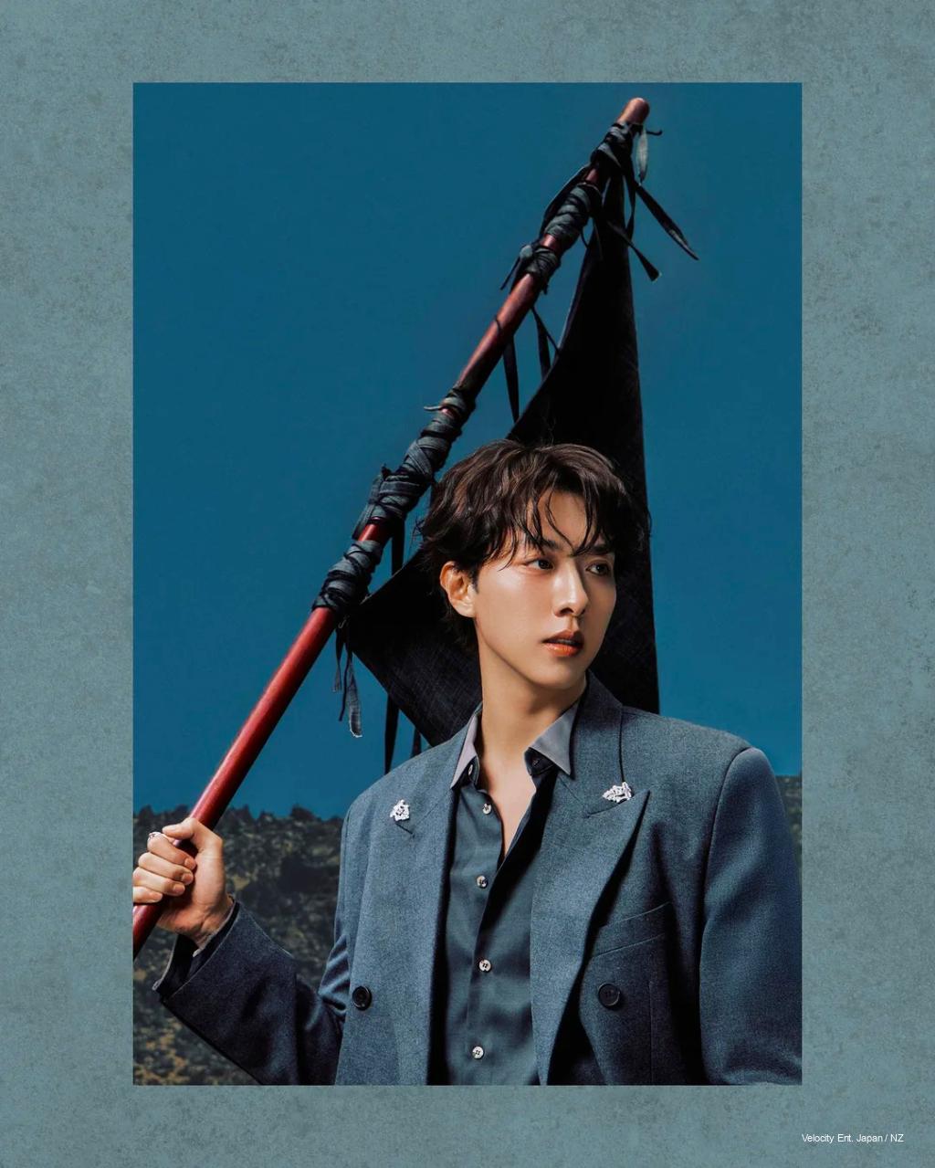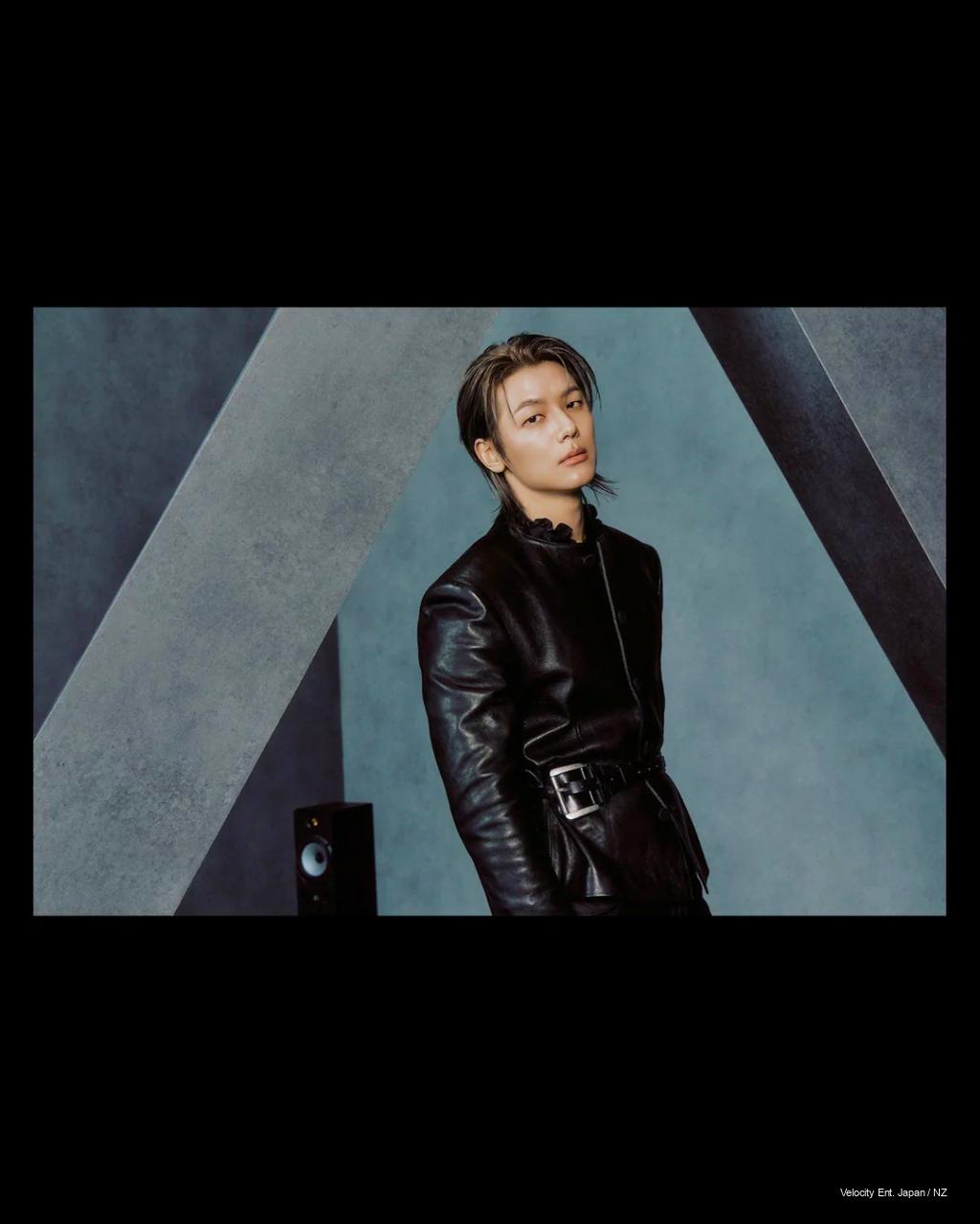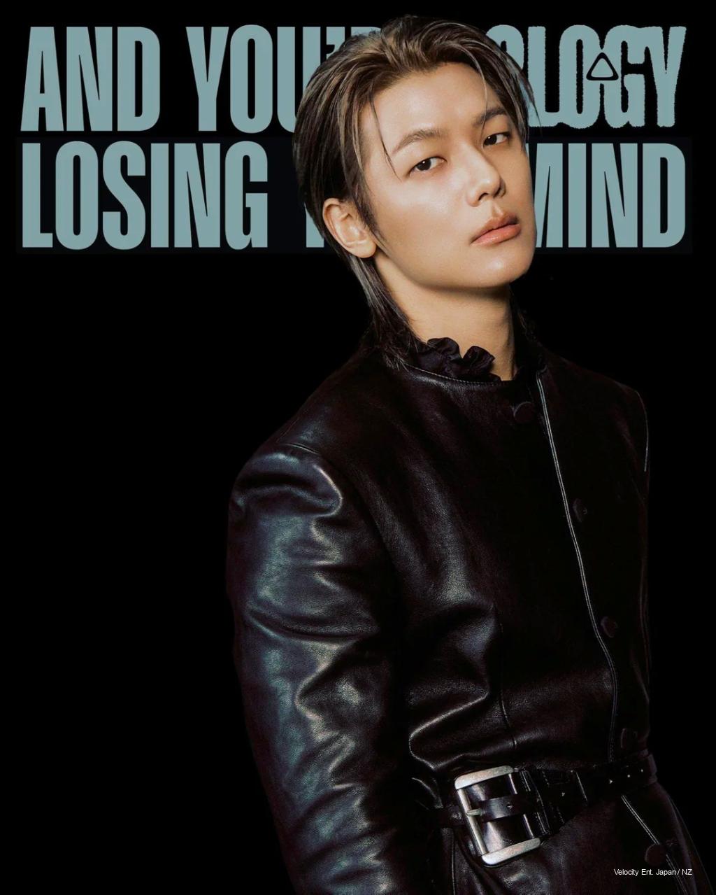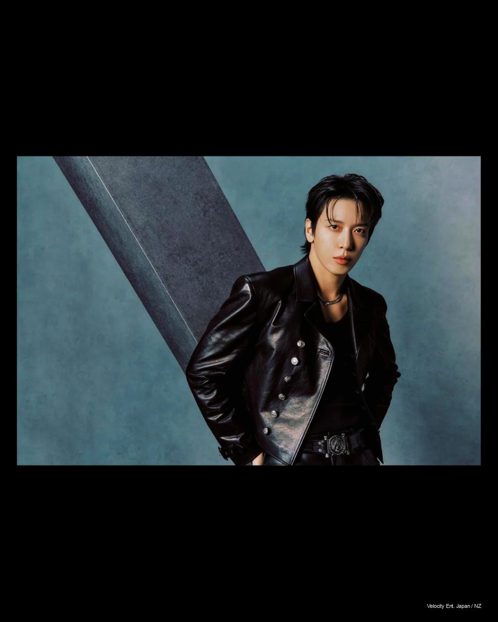 • The first group concept photo is laid out like a bold festival or tour poster, with the members in leather jackets standing in front of their instruments, their gazes direct and unapologetically “rock star.”