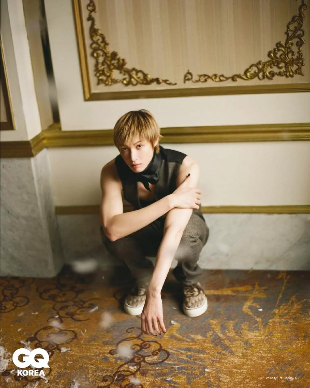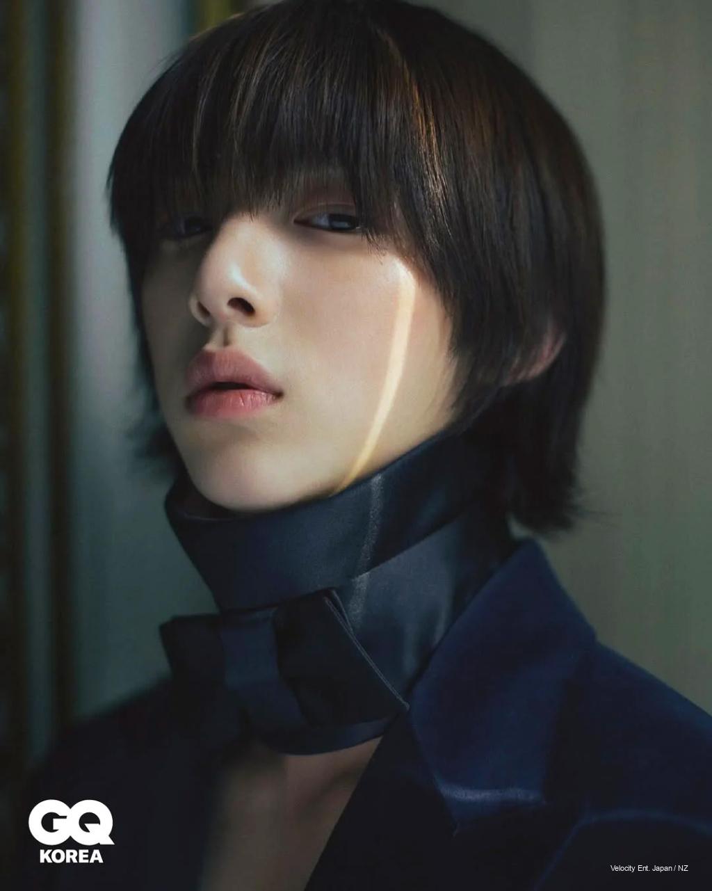 - Keonho: Wearing a tailored leather jacket and slim-fit trousers, Keonho’s styling is sharp and modern. His hair is styled with a textured crop, and makeup includes a subtle contour and glossy lip for a polished finish.