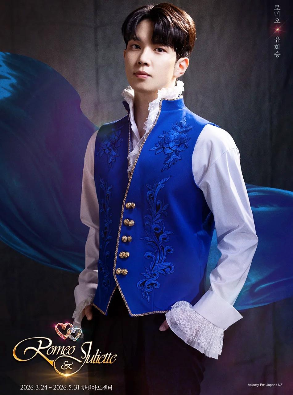 Yoo Hweseung (N.Flying) leads as Romeo, the passionate lover sacrificing all for Juliet. A musical vet from Mozart!, Next to Normal, and We Will Rock You, his powerhouse vocals shine.