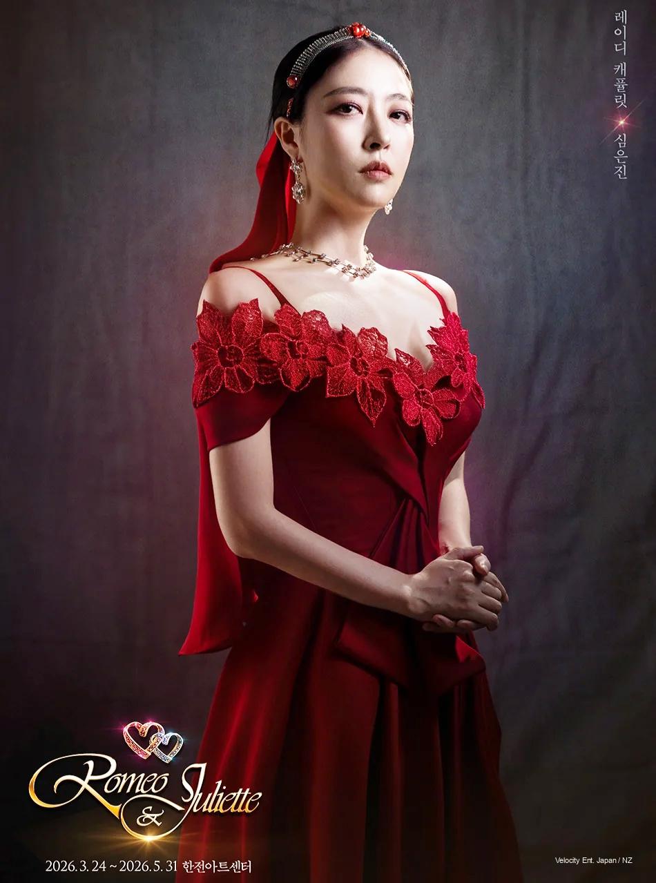 Shim Eunjin (Baby V.O.X) commands as Lady Capulet, Juliet’s fierce mother. The ’90s K-pop legend, now a stage icon, pairs delicate acting with soaring vocals.