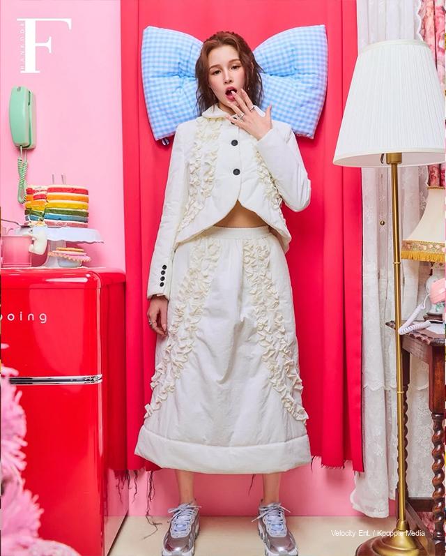 Fans on Reddit and Instagram have hailed the editorial as “Lea’s most daring look yet,” with many noting how the shoot elevates K-pop’s influence on beauty standards worldwide. The vibrant, unapologetic use of color speaks to a generation that values individuality and bold self-expression, traits that are increasingly reflected in both K-pop fashion and global streetwear. Commentators have drawn parallels between Lea’s looks and the recent rise of “Korean candycore” and “pop-punk K-fashion,” where bright hues, graphic shapes, and playful accessories dominate runways and social feeds.