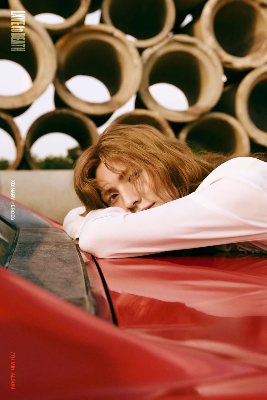 The overall concept behind the “LXVE to DEATH” teaser photos by Xdinary Heroes centers on a bold, intense emotional narrative that combines classic rock brawl imagery with deeper, poignant moods. The initial teasers featured intense red tones and a hard-boiled, classic rock band vibe conveying raw energy and conflict.